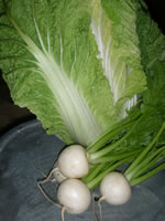 今朝、地元で取れたばかりの白菜と小かぶ。白菜は塩漬けや甘酢漬け、キムチにぬか漬けはもちろん蒸したり鍋に入れたりとこの時期欠かせない食材ですね。かぶには100種類近くの品種があるらしく!!、とても覚えきれませんが…。「葉」の部分は、長めに漬けて細かく刻んだものを削り節や納豆と合えたら立派なひと品の出来上がり。