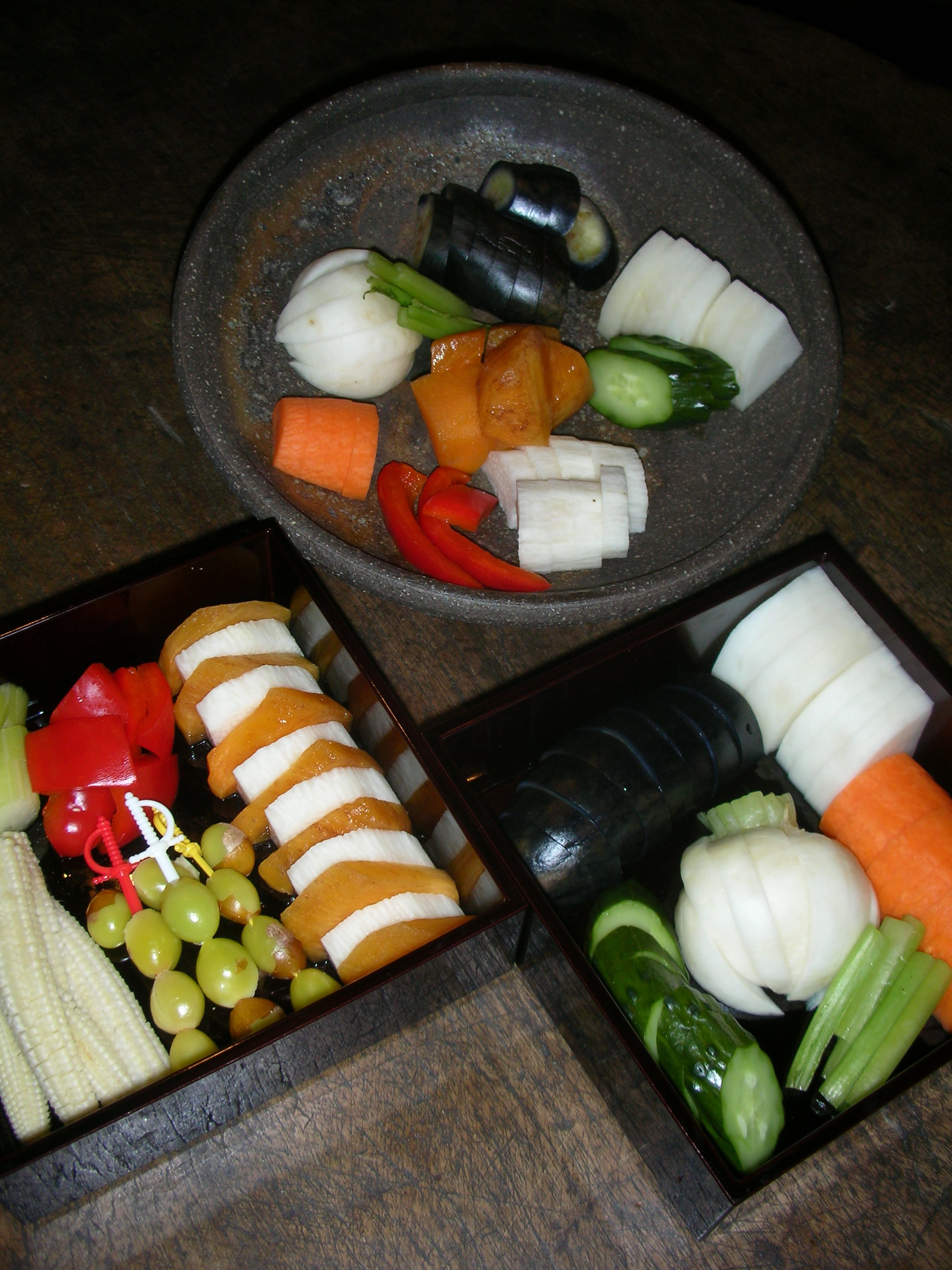 正月三が日は何はなくても、まず雑煮である。蕪村が句に詠んでいるように、三杯もお代りをするくらい雑煮が好きだ。いや、正直に言えば、おせちも大好きである。 ぬか漬を重箱に詰めてみた。大根、人参、かぶ、きゅうり、長芋、なす、柿、銀杏、パブリカ、セロリなど…彩りもよくなかなかの出来栄え。箸休めにもよろしかな。 本年も何卒よろしくお願い申し上げます。 2014年 ぬかどっ子店主