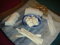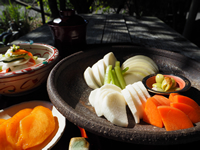 静岡原産の、「次郎柿」を漬けました。ぬかの酸味と よく合います。「柿が色づくと医者が青くなる」と言われるほど栄養豊富な柿。ビタミンCを多く含み、風邪の予防や二日酔いにもイイらしいですね。